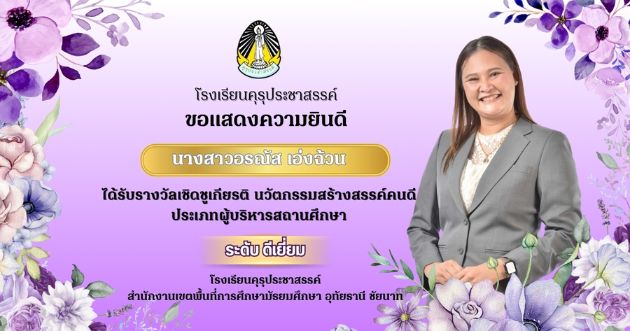 โรงเรียนคุรุประชาสรรค์ขอแสดงความยินดีกับ นางชุลีกร ปิ่นแก้ว ครูโรงเรียนคุรุประชาสรรค์ เนื่องในโอกาสได้รับการคัดเลือกเป็น “ข้าราชการพลเรือนดีเด่น ประจำปี พ.ศ. 2568” ระดับส่วนภูมิภาค